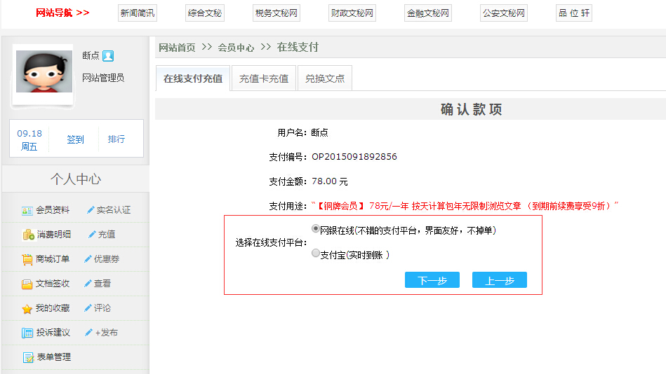主题:[入会支付]网上银行在线充值支付流程 [收藏主题] 本贴被置顶显示